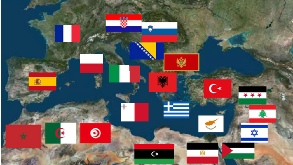 Quelques mots pour rappeler que la Méditerranée est bordée par 22 pays, et que cette mer, que les Romains appelaient « Mare Nostrum » (« notre mer »), a connu une très longue et très riche histoire et vu naître de très nombreuses civilisations exceptionnelles, ce qui en fait beaucoup plus qu’une masse liquide traversée par des cargos ou un ensemble de lieux de vacances !