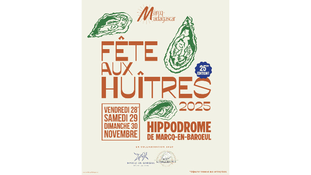 Comme chaque année, nous avons le plaisir de vous convier à La Fête aux Huîtres ce vendredi 28 novembre 2025 à partir de 19h30 à l'Hippodrome de Marcq-en-Baroeul.