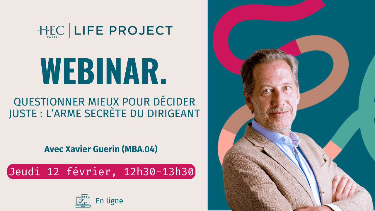 Dans ce webinar interactif, Xavier Guérin, coach de dirigeants au sein du collectif Visconti Partners et Maître Praticien en Questiologie, propose de redécouvrir l’art de la question comme un outil stratégique de lucidité et d’influence afin de faire émerger une nouvelle posture de leader – celle du questionneur éclairé, capable de créer de la clarté là où les autres cherchent encore des certitudes.