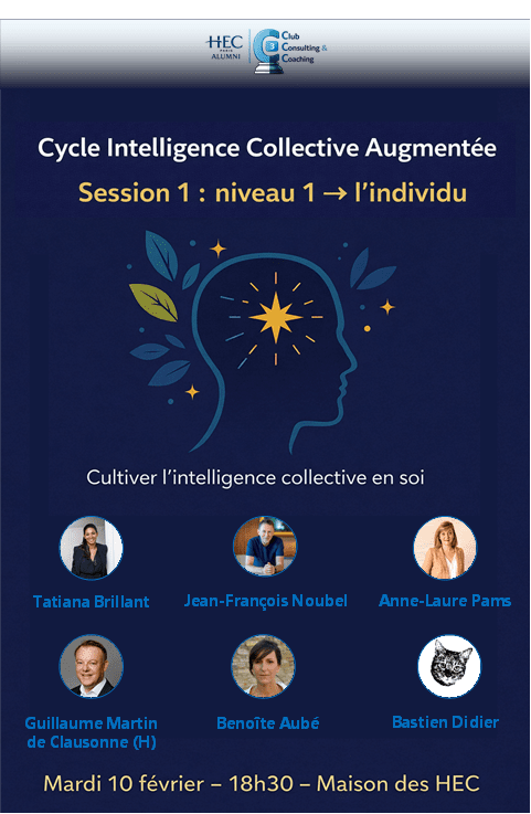 C’est précisément l’ambition du nouveau cycle de conférences du Club Consulting & Coaching HEC Alumni, consacré à l’Intelligence Collective Augmentée — humaine, organisationnelle… et interrogée à l’aune de l’IA.